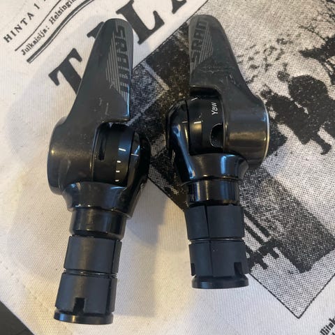 Voss-merkkinen tempotanko. Hiilikuitua. Ok-kunnossa. Löytyy myös tähän sopivat sramin mekaaniset vaihtajanapit ja jarrut.