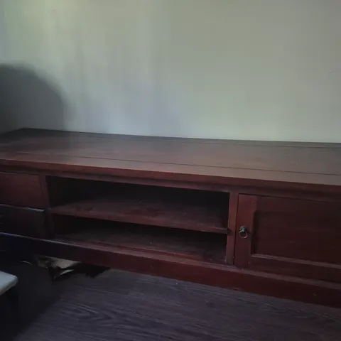 TV tason oikean puolen jalkojen välinen alkuperäinen lauta hajosi (näkyy kuvassa) ja tilattu Ikeasta varaosa, joka onkin hieman erisävyinen kuin alkuperäinen jalka.