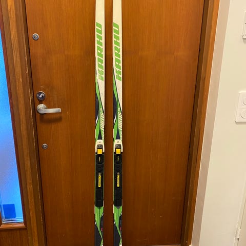 Hyväkuntoiset naarmuttomat sukset ja sauvat. Nnn siteillä.