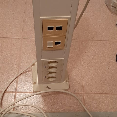 Monitoiminen sähköpylväs pistorasioilla ja kytkimillä