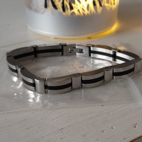Tyylikäs ja näyttävä ruostumattomasta teräksestä valmistettu rannekoru, jossa säihkyvät zirkoniakivet.