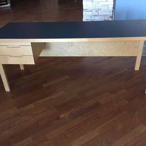 Harvinaisempi koko Artekin pöydästä, jossa musta kansi ja koivurunko. Laminaatti imenyt pintaan hieman jälkiä jotka saattaa lähteä jollain oikealla aineella pois. Jaloissa elämän jälkiä. Runko jämäkässä kunnossa. Nouto, ei toimitusta.