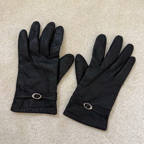 Mustat 2 nahkahanskat ja yhdet nahkarukkaset koko 8 kaikissa