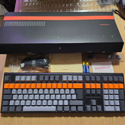 Myyntiin vähän käytetty kompakti Varmilon vaaleanpunainen mekaaninen näppäimistö.