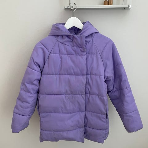 Myydään violetti kevyttoppatakki koko 146/152cm, ehjä
