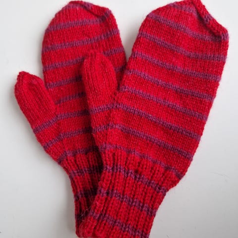 Villalangasta neulotut lapaset, kirjoneule, joten mukavan lämpimät talvella. Kämmenen pituus ranteesta sormenpäihin 18 cm.