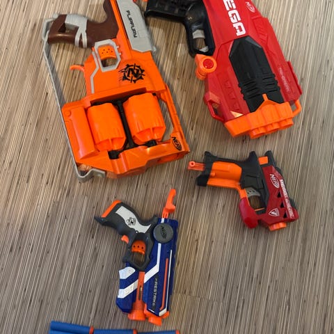 4 hyvä kuntoista Nerf asetta mukana 15 panosta (VAIN NOUTO JA KÄTEINEN)