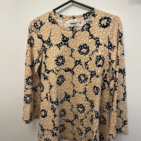 Myyntiin upea Marimekko Tiina unikko tunika koossa 36. Materiaali 95% silkki, 5% elastaani. Uusi, käyttämätön ja laput paikoillaan. Sopii vaikka lahjaksi.
