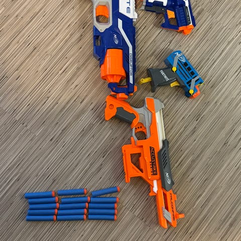 Hyvä kuntoisia nerf aseita + 15 normipanosta (Ei mega panoksia) (VAIN NOUTO JA KÄTEINEN)