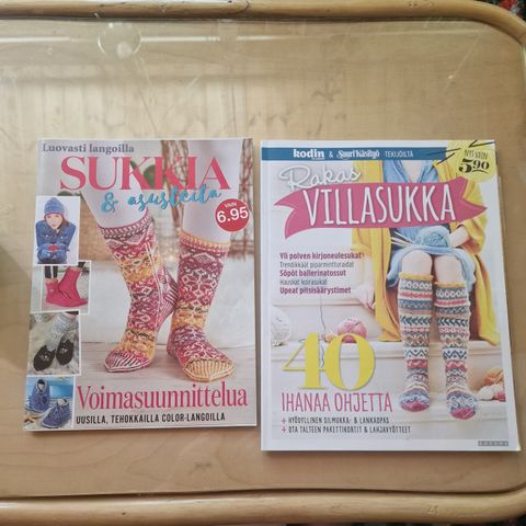 Unelmien sukat -lehti vuodelta 2025 sisältää neuleohjeet villasukkiin eri vuodenaikoihin, kuten syksyyn, talveen, kevääseen ja kesään. Kirjoneuleita, palmikoita ja pitsiä.