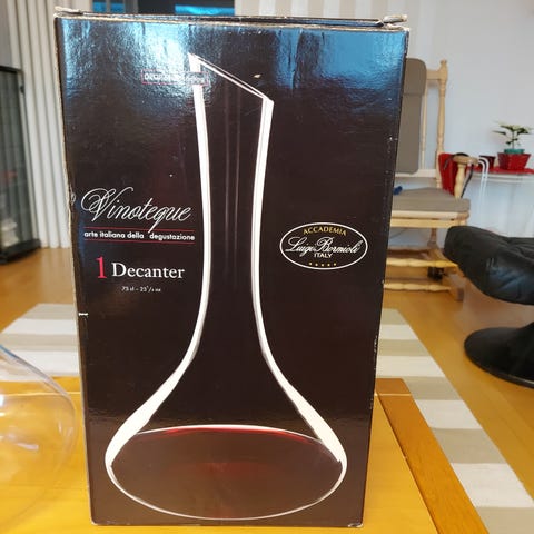 Viinikarahvi/dekantteri. Moitteettomassa kunnossa. Hankittu Stockkalta. Heilahteleva swinging malli takaa nopean dekantoitumisen. Max. vetoisuus 1,5 litraa, mutta optimoitu yhdelle viinipullolliselle. Vain nouto.