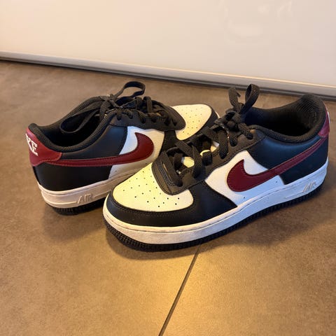 Nike lasten tennarit, koko 38. Tennarit ovat mustan ja oliivinvihreän väriset, yhdistettynä valkoiseen Nike-logoihin. Korkeat nauhalliset malli, sopivat vapaa-ajan käyttöön.