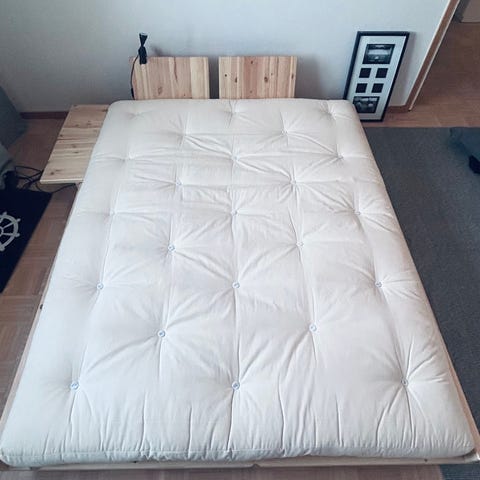 Myydään futon-patja. Sarjassa yksi isompi tahra, muuten hyvässä kunnossa.