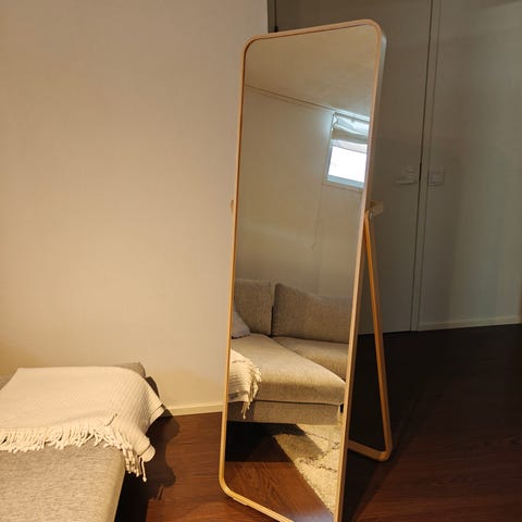 Myydään hyväkuntoinen musta Ikea Isfjorden lattiapeili.