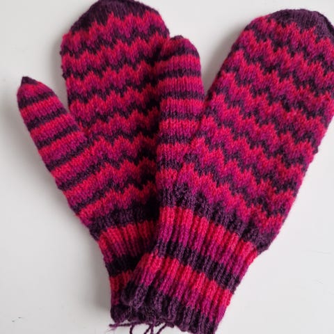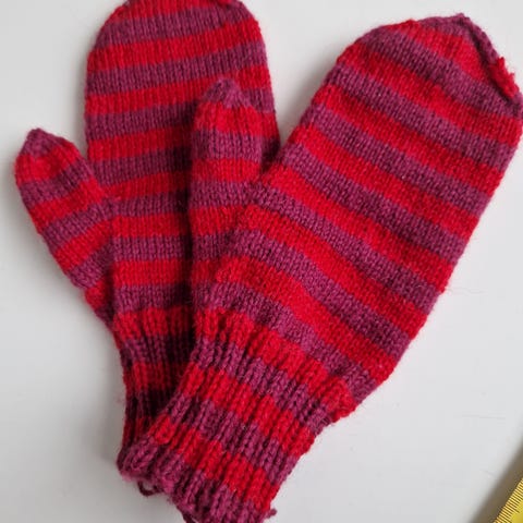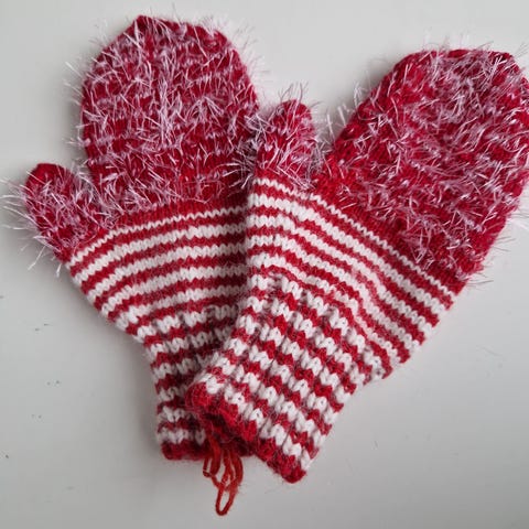 Uudet lapaset villasekoitelangasta. Kämmenen pituus ranteesta sormenpäihin 16,5 cm. Lapselle tai pieneen aikuisen käteen.