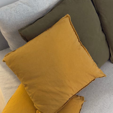 Höyhentäytteinen tyyny tekee sohvan nurkasta pehmeän kotoisan ja mukavan. Tyynyn ilmettä on helppo päivittää erilaisilla tyynynpäällisillä.