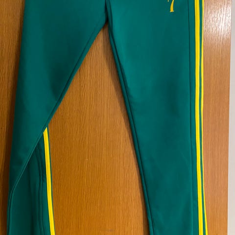 Kuin uudet, käytetty vain joukkueena liikkuessa, ei muussa käytössä. Toisessa raidat koko matkalla housujen sivussa, toisessa raidat vain puolesta välistä säärtä taskun alkuun/puoleen väliin.