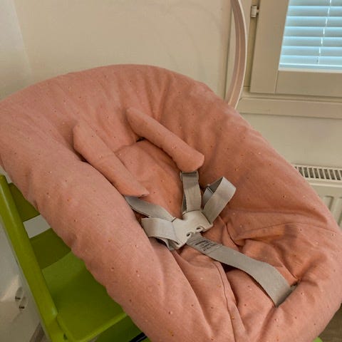 Newborn set Stokken Tripp Trapp -tuoliin. Siisti käytetty kunto. En löytänyt isompia moitteita.