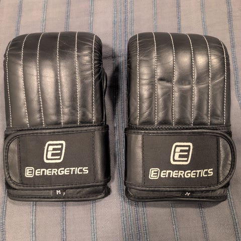 Hyväkuntoiset ja vähän käytetyt. Omaan M-kokoiseen naisen käteen sopivat. Tekonahkaa