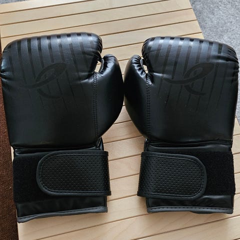 Nahkaa, muutaman kerran käytetty. Sopii hyvin naisen M-kokoiseen käteen