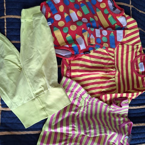 - Polarn o. Pyret tummansini-valkoraidalliset pitkähihainen paita ja leggingsit. Koko molemmissa 74. Hp. 16e
