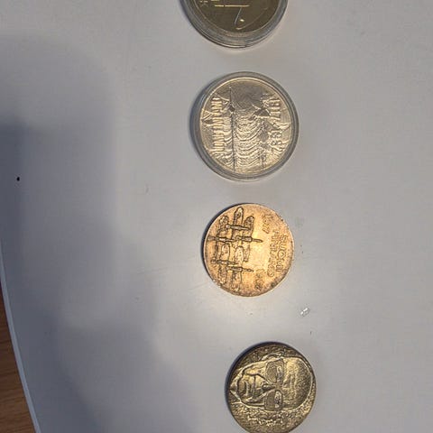 Juhlakolikko vuodelta 1981. Kolikkoon on kuvattu hääpari. Postitus onnistuu tarvittaessa.