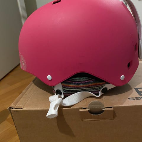 Hyvässä kunnossa oleva salomonin laskettelukypärä ja lasit. Vähän käytetyt. Uutena meille ostetut.