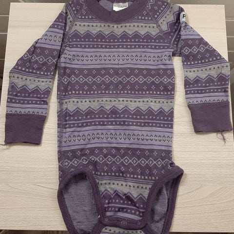 Polarn o pyret merinovilla body in overall great condition however has a tiny hole starting to form in the chest area (picture 2). Unfortunately got close to velcro there :(, hence the price is reduced. It can be fairly easily fixed.