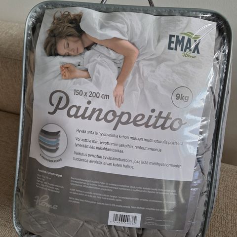 Myydään muuton vuoksi eteenpäin EMAX merkkinen painopeittto 6.8kg. Peitto hyvässä kunnossa sillä se on ollut vähällä käytöllä ja säilytetty aina tuotteen omassa pussissa. Pussi mennyt rikki, kuten kuvassa näkyy.