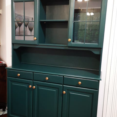 Luonnonvalkoinen jykevä kaappi, joka sopii moneen tilaan. Ollut ruokahuoneessa astiakaappina. Kauniit koristekuviot antavat uniikin ilmeen.