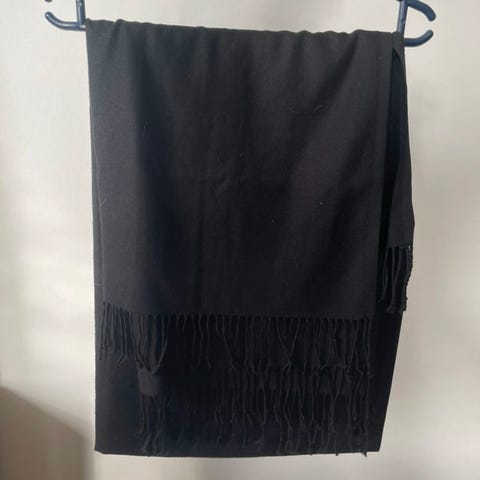 Iso kolmiomallinen neulehuivi, jonka pituus pisimmältä sivulta on n. 160 cm ja huivin keskitaka pituus on n. 68 cm.