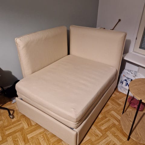 Harmaa levitettävä divaani. Leveys 73cm