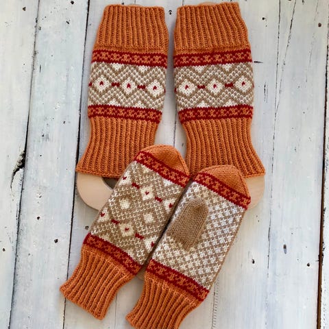 Myyn neulomani kirjoneulelapaset / tumput ja pipon.