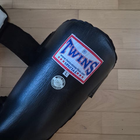 Käytetyt blue corner säärisuojat. Koko M, nahkaa.