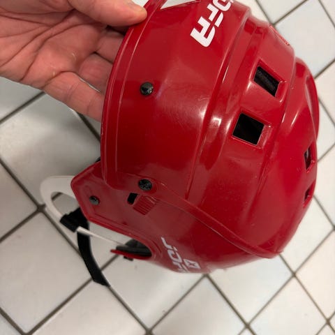 Myydään käytetty vaalenanpunainen JOFA luistelukypärä. Koko 49-56cm, säädettävissä ruuveilla.