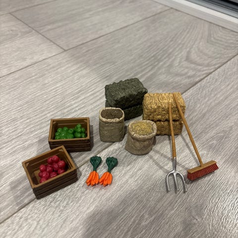 Schleich hevostenruoka paali rehusäkki porkkana omena ämpäri