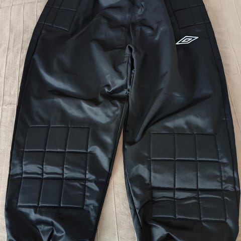 Käyttämättömät lonkista ja polvista topatut pitkät maalivahtihousut. Koko Jr XL, jossa vyötärönleveys 35cm ja lahkeen pituus 70 cm.