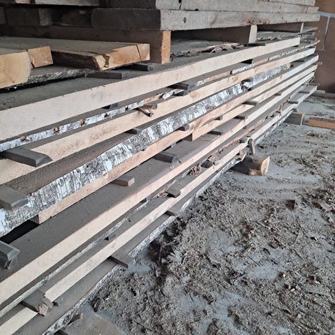 Kuivaa 50mm haapaa. Yksi reuna särmäämätön.