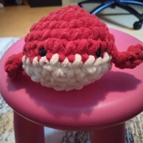 Virkattu valas pehmolelu uusi. Lanka Alize velluto-lankaa
