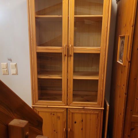 Myydään iso puinen kirjahylly lasiovilla. Hieman käytön jälkiä, mutta muuten ehjä ja siisti. Vain nouto.