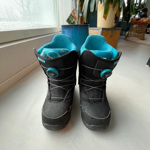 Burton Progression Boa lumilautakengät, koko 23. Värit musta ja sininen. Varustettu Boa-nauhoitusjärjestelmällä. Soveltuvat lumilautailuun.