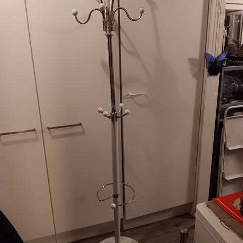 Hyväkuntoinen metallinaulakko. Korkeus 182cm, levein kohta (jalat) 50cm. Siisti, ei pinnoittevikoja.