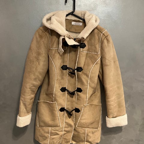 Jonkin sortin keinonahka /keinoturkis takki.