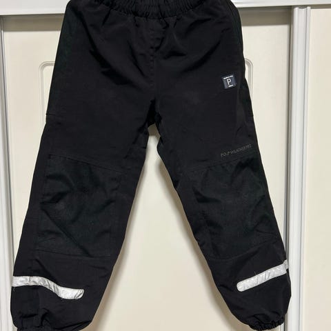 Kohtuu hyväkuntoiset 122cm (6-7 v) lasten kestävät ulkohousut. Vasemman lahkeen alaosan heijastin osin pois, muutoin kunto varsin hyvä