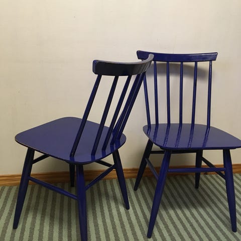 Myydään vanhat pinnatuolit 4kpl, tukevat eivätkä heilu. Istuinosassa kahdessa kulumaa (viimeiset kuvat) eli tarv maalauksella saa kuin uudeksi. 25e/kpl eli yhteensä 100e 4kpl/tarjoa. Nouto Oulunkylästä.