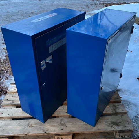 Hyväkuntoinen 4-ovinen peltikaappi. Leveys 1200, syvyys 550 ja korkeus 1850