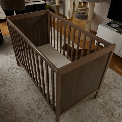 Halutessaan mukaan saa patjan (isot tahrat, katso kuvat) ja reilusti lakanoita (erinomaisessa kunnossa).