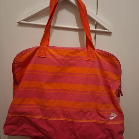 Vintage Nike-urheilukassi joka on valmistettu kestävästä nylon materiaalista. Pit. 44 cm, kork. 24 cm. Toisessa päässä erillinen "osasto", toisessa sivussa sivutasku. Myös olkahihna.
