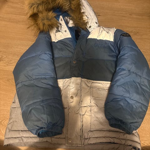 Hieno Svea talvitakki koko 160, Hupun kiinnityskihdassa pieni repeämä, siksi edullisesti. Nouto, mobilepay/käteinen.