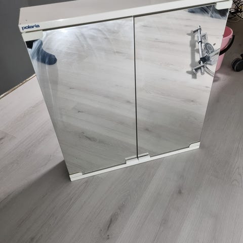 Allaskaappi, jossa on valkoinen pesuallas ja krominen Cristina hana. Kalusteessa on kaksi vetolaatikkoa ja se on suunniteltu kylpyhuonekäyttöön.